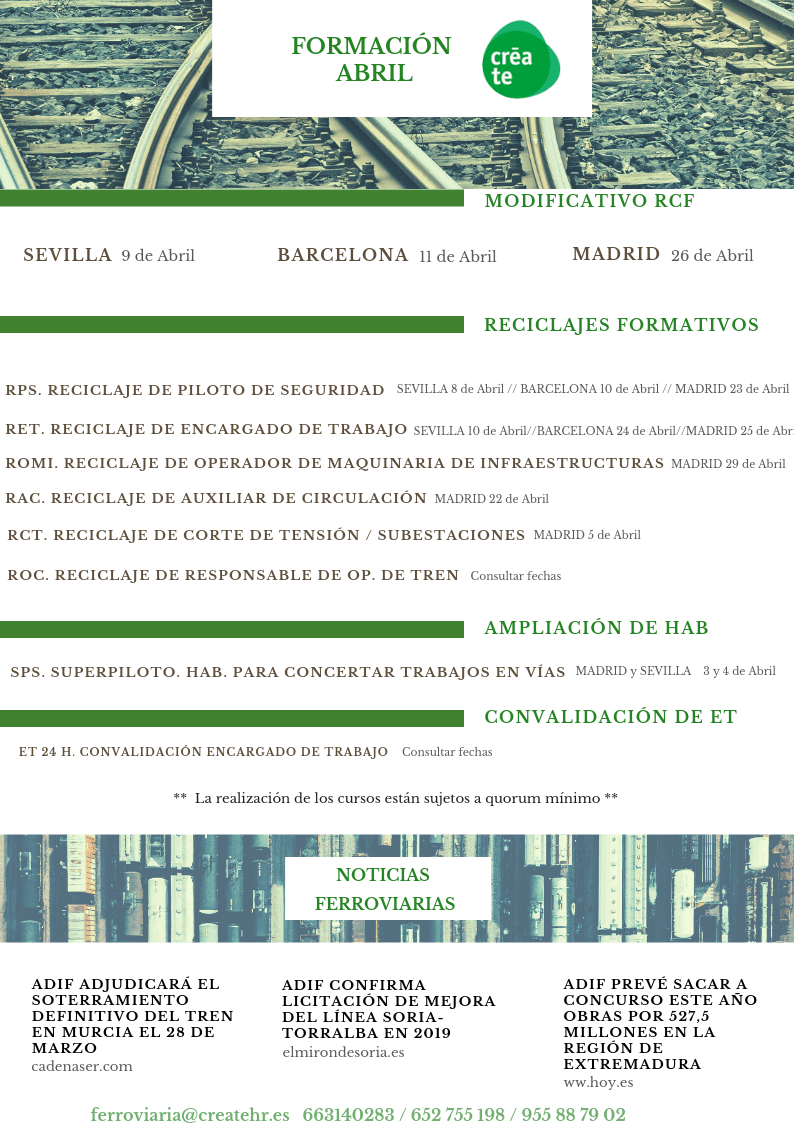 · Maquinista· Nuevas Habilitaciones· Electrificación· Instrucciones Técnicas· Especialidad Ferroviaria· Oposiciones· Jornadas Formativas· Ver todo