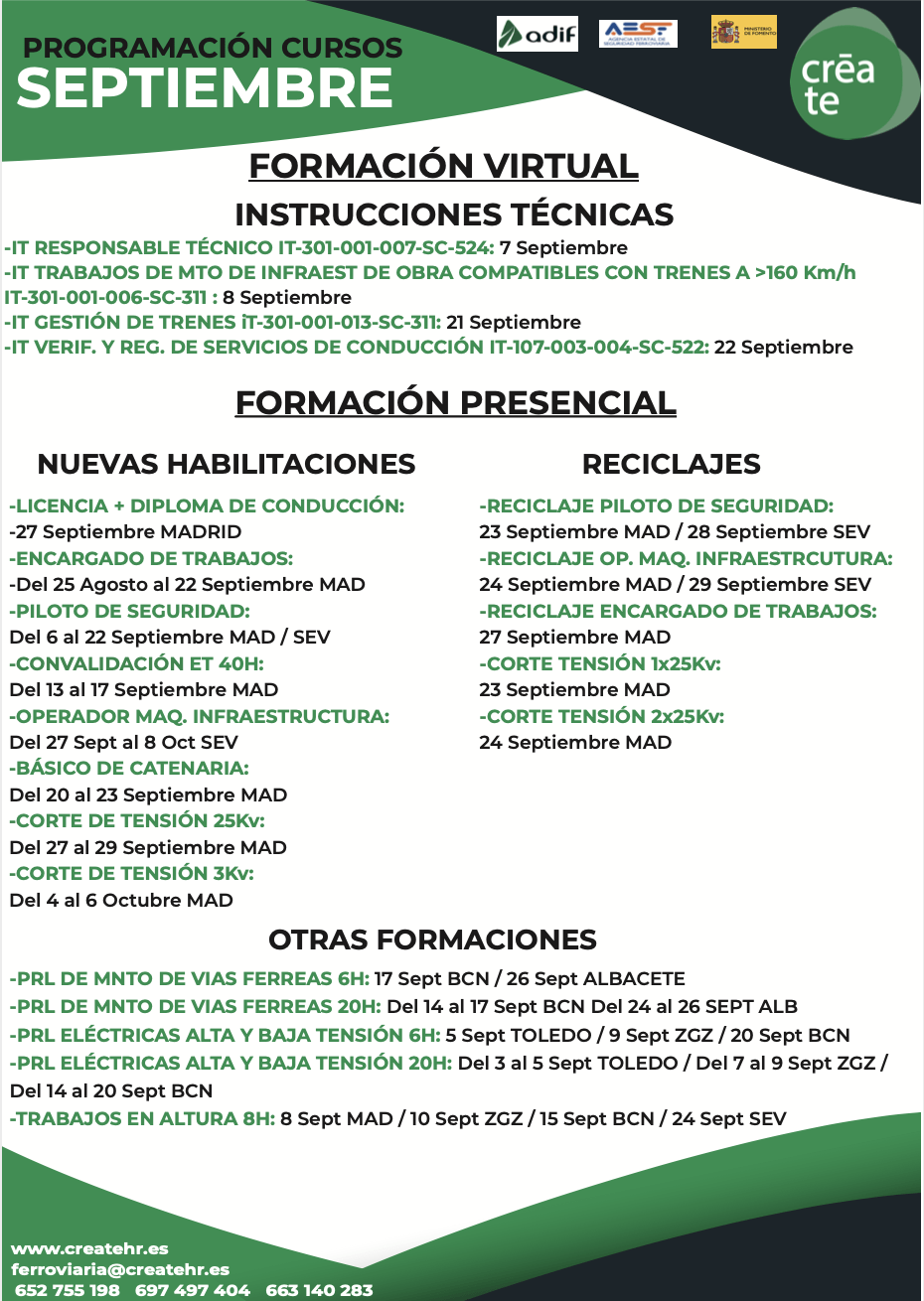 Para más información, escríbenos a ferroviaria@createhr.es o llámanos a 652 755 198 – 697 497 404 – 663 140 283.