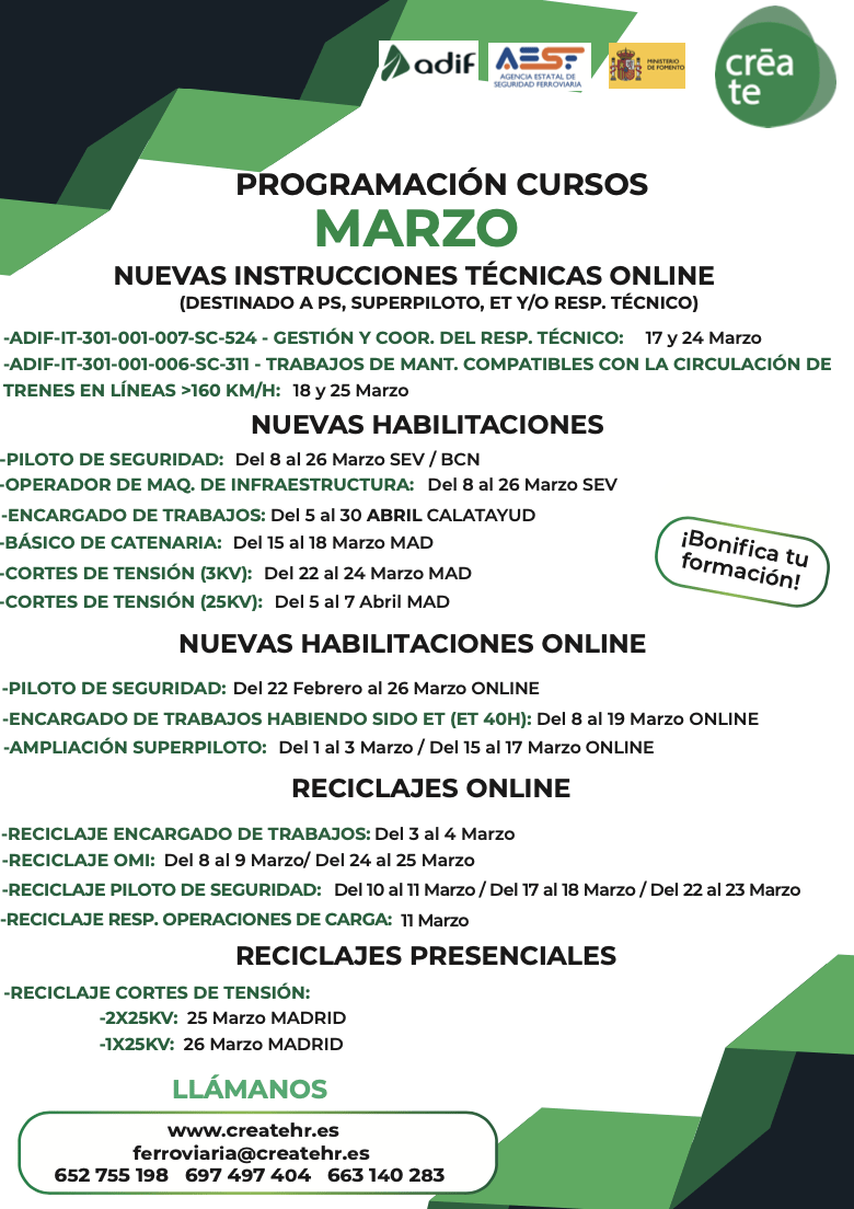 A continuación, te dejamos el desglose de cursos ferroviarios para el mes de marzo.